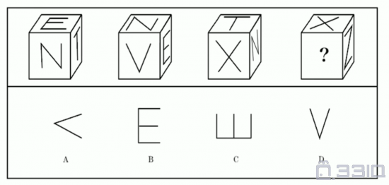以下是同一个立方体的不同视角,则“?”处的图形是?
