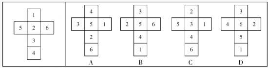 左边给定的是六面体的外表面展开图,右边哪一项能右它折叠而成?