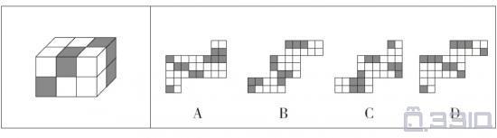 左边给定的是纸盒的外表面,下面哪一项能由它折叠而成?