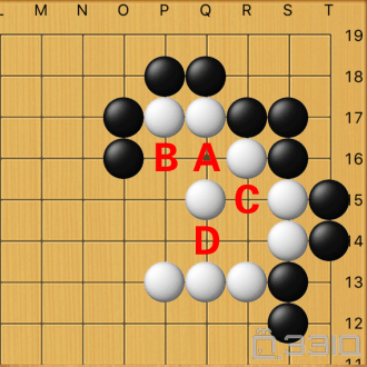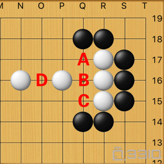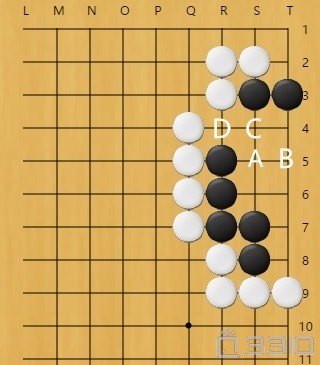 (黑先行)吃掉上面的一颗白子,黑子的第一步应该走哪儿?