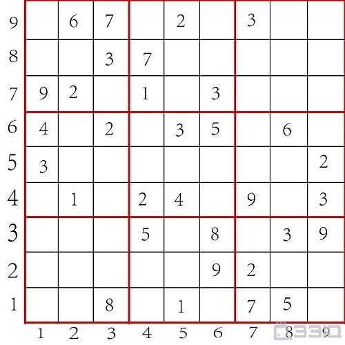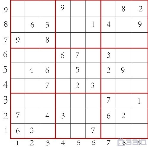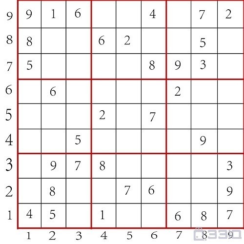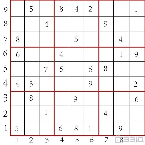 【九宫数独】坐标(1,2)(1列2行)位置上的数字是多少