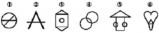 把下面的六个小图形分为两类,使每一类图形都有各自的共同特征或规律,分类正确的一项是:
