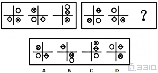 选择最合适的一个选项填入问号处,使之呈现一定的规律性: