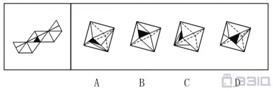 左边给定的是纸盒的外表面,下面哪一项能由它折叠而成?