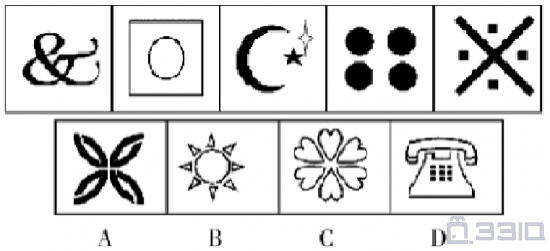 从所给的四个选项中,选择最合适的一个选项作为后一个图形,使之与题目图片呈现一定的规律性:
