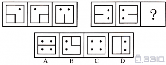 请选择最适合的一项填入问号处,使之符合之前四个图形的变化规律。