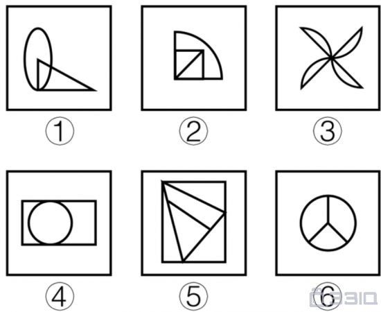 把下面的六个图形分成两类,使每一类图形都有各自的共同特征或规律,以下选项中分类方式可行的是( )。
