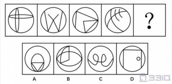 请选择最适合的一项填入问号处,使之符合之前四个图形的变化规律。