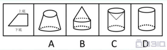 如图所示直角梯形,以它的上底为轴旋转360度,能够得到的立体图形是()。