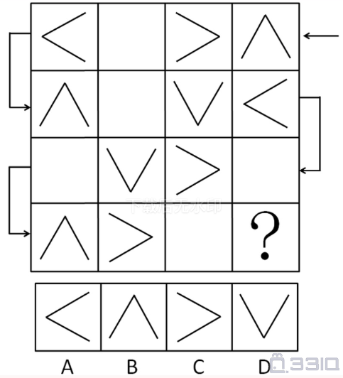 从所给的四个选项中,选项最合适的一个填入问号处,使之呈现一定的规律性: