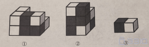 如图所示,下列物体均由纯黑色和纯白色的小立方体组成。则物体1与物体2中,哪个由5块物体3堆积而成?