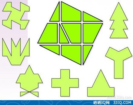 还是拼图的题目,现在难度会慢慢提高,如图,我们是否能够用图中央的碎片来拼成四周的图形呢? 【33iq翻译组】