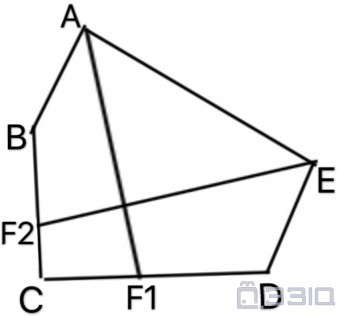如圖所示,在五邊形ABCDE中,BC⊥CD.過點A作∠A的平分線AF1交CD於F1.過點E作∠E的平分線EF2交BC於F2.已知:(AF1·sin∠BAE)/(EF2·sin∠AED)=cos∠BAF1/cos∠F2ED.F1C+F2C+F1C·F2C=19,F1C-F2C+2F1C·F2C=25.設AE與CD之間所成的銳角為P.則cot∠P的值為( ).