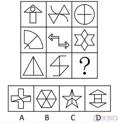 从所给四个选项中,选择最适合的一个填入问号处,使之呈现一定规律性: