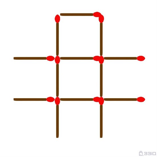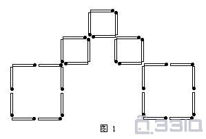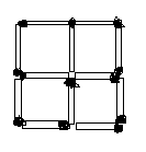 对面的人不声不响,掏出一盒火柴,数出12根,在桌上摆成图1所示的田字格,然后伸出右手5个指头。你看,里面4个小正方形,外围还有一个大正方形,总数是5个。