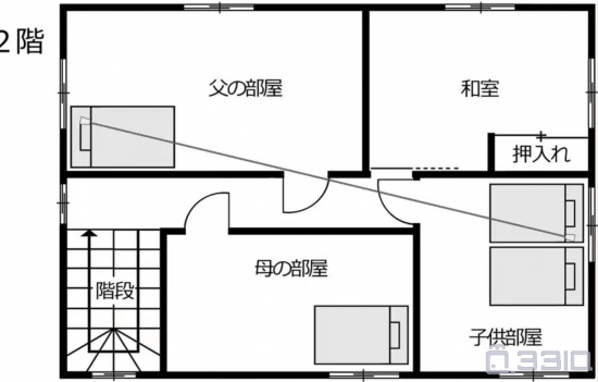 三楼的中间是大家休息的棋牌室,整体布局和二楼一样,唯独小白的窗户有个通往阳台的架子,除此之外楼梯也可以上下楼通往阳台。分别住着左上角的小白,右上角的小紫以及左下角的小灰。