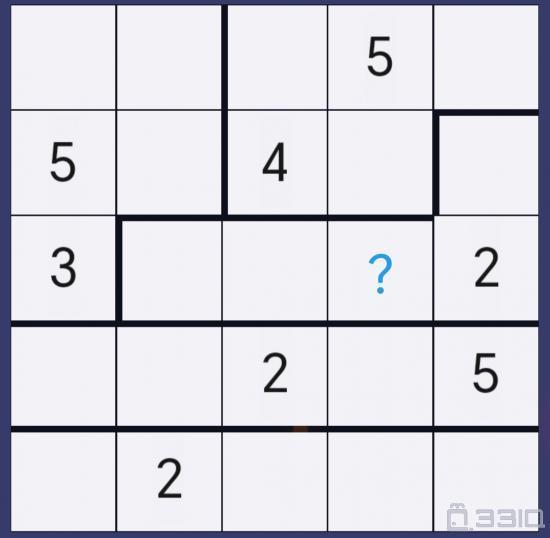 异形数独(9)每行每列每个区域数字1~5不重复,问号处是什么数字?