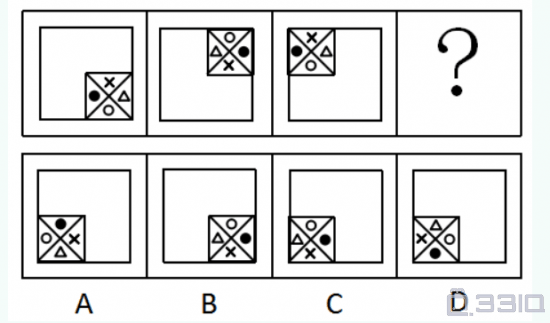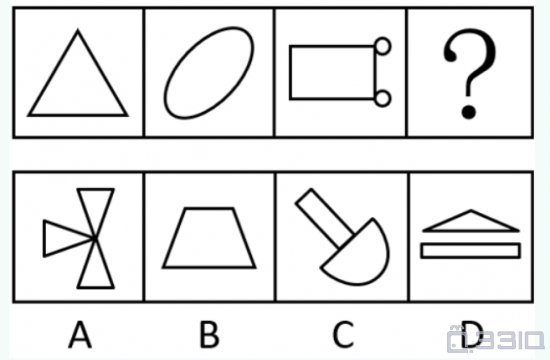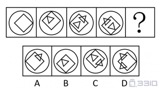 图形具有一定的规律,也存在某种差异。要求你从四个选项中选择你认为最适合取代问号的一个: