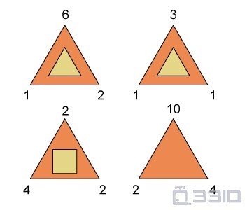 看这些三角形,根据其中的规律,找出在第四个三角形中的图形是什么?