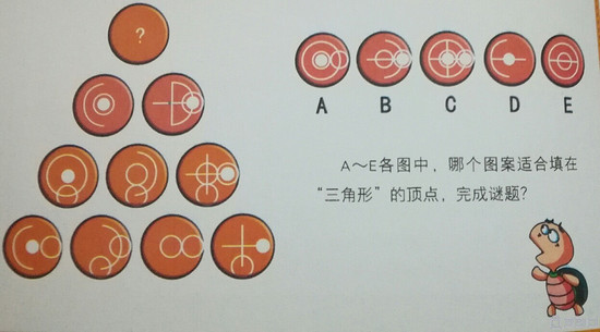 A~E个图中,哪个图形适合填在“三角形”的顶点,完成谜题。