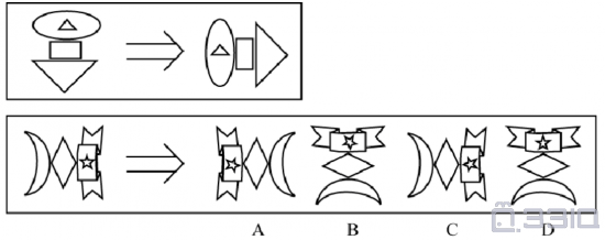 根据第一组图形的变化规律,推出第二组图形的变化结果。