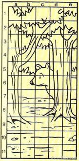 森林里突然出现了一只探头探脑的熊。你能从上图中找出完全相同的方格来吗?仔细一点哦,它们的方向可能不一样。