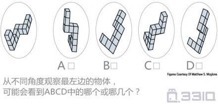 这是一道测试心理旋转能力的题目,选项已经手动排除了只是看到单一图形的可能。