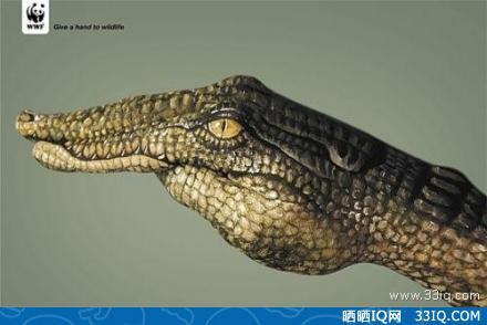 WWF环保创意公益海报:手臂上的彩绘,配合适当的动作,每一种动物都栩栩如生~,只需伸出你的援手,就能拯救自然,保护野生动物。考考你,你觉得哪句话更能突出该海报的主题?