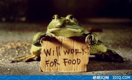 古有卖身葬父,今有吃不饱的青蛙卖身求虫,Will work for food.No insects left.考考你,这是什么产品的创意海报?