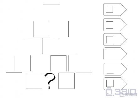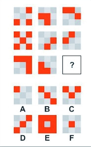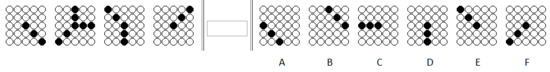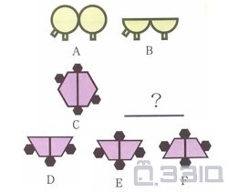 下图是根据一定的规律排列的。请在图型A. B. C. D. E. F 中选择适合的一个方在问号处。