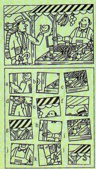 下面的12幅小图都是根据这幅大图复制而成的,可是其中有3幅小图都包含一处多余的细节,有4幅小图却都缺少一处细节。你能找出所有多余的和缺少的细节吗?