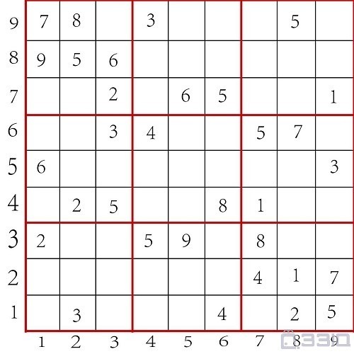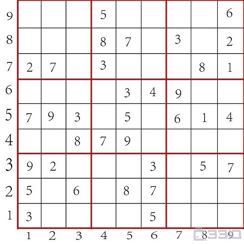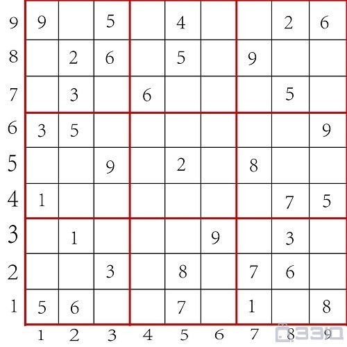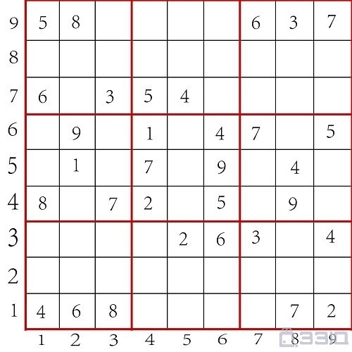 【九宫数独】坐标(1,2)(1列2行)位置上的数字是多少