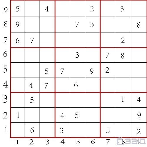 【九宫数独】坐标(1,4)位置上的数字是多少