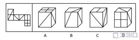 下面五个图形,可以拼合(可平移,旋转,不可翻转,每个图形至少使用一次)成选项中的哪一个图形?