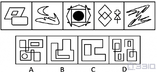 请从所给的四个选项中,选出最符合左边五个图形一致性规律的选项: