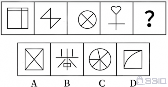 从四个选项中选择一个替代问号,使之呈现一定规律性,最适合的是