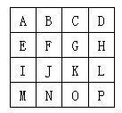 如图所示的4X4方格中,在A处放着和一格大小相同的骰子,顶面是1点,底面是6点。现在让你可以自由翻动骰子,但不能滑动,也不能移出方格外。要将骰子由A点翻到P点,并且6点朝上,最少要翻多少次呢?